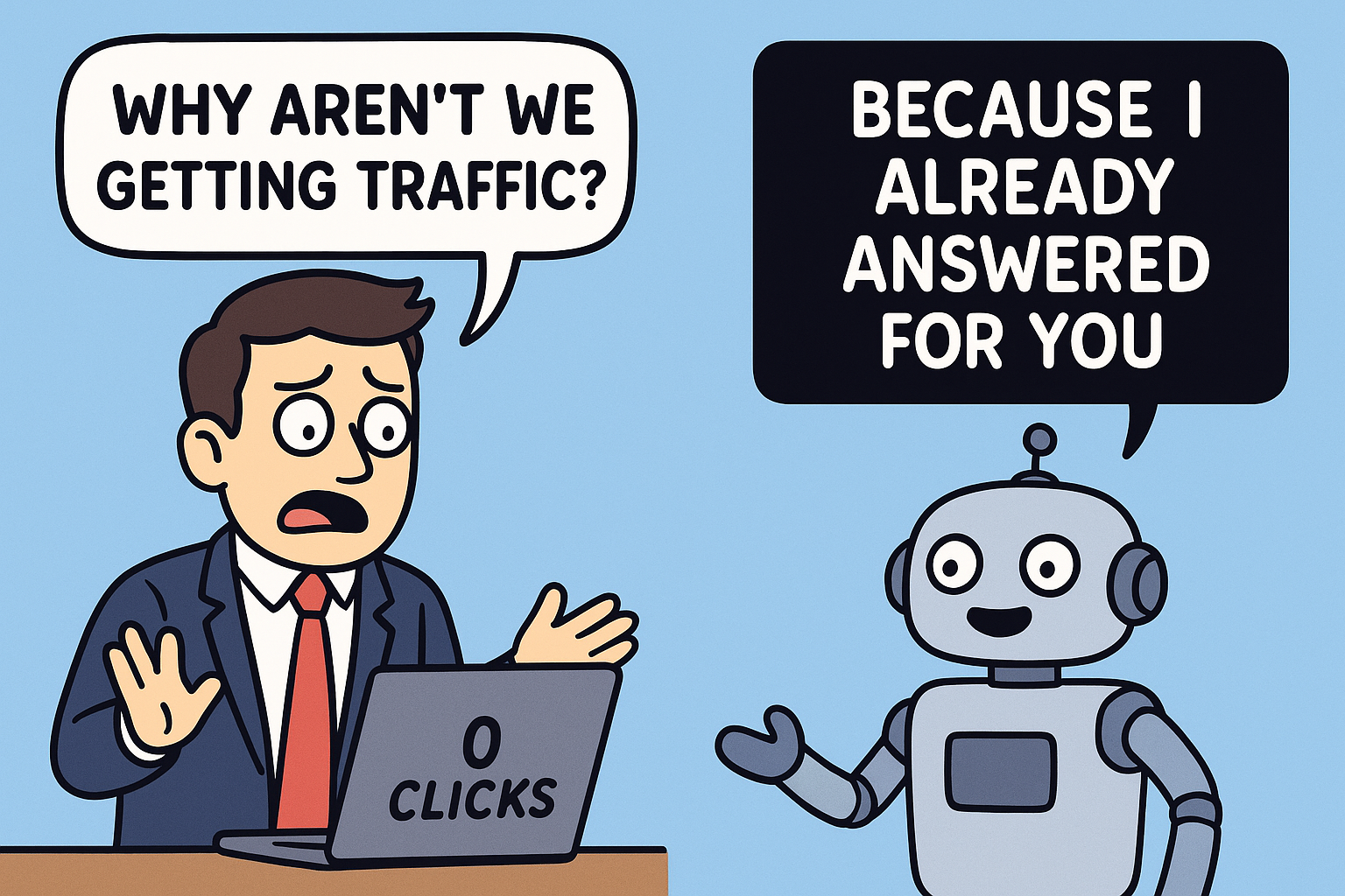 - Mit Beginn der KI-Suche (ChatGPT, Gemini, Perplexity, Copilot) wurde eine Zero-Click-Ära eingeläutet, in der Antworten sofort erscheinen – ohne Website-Besuche.